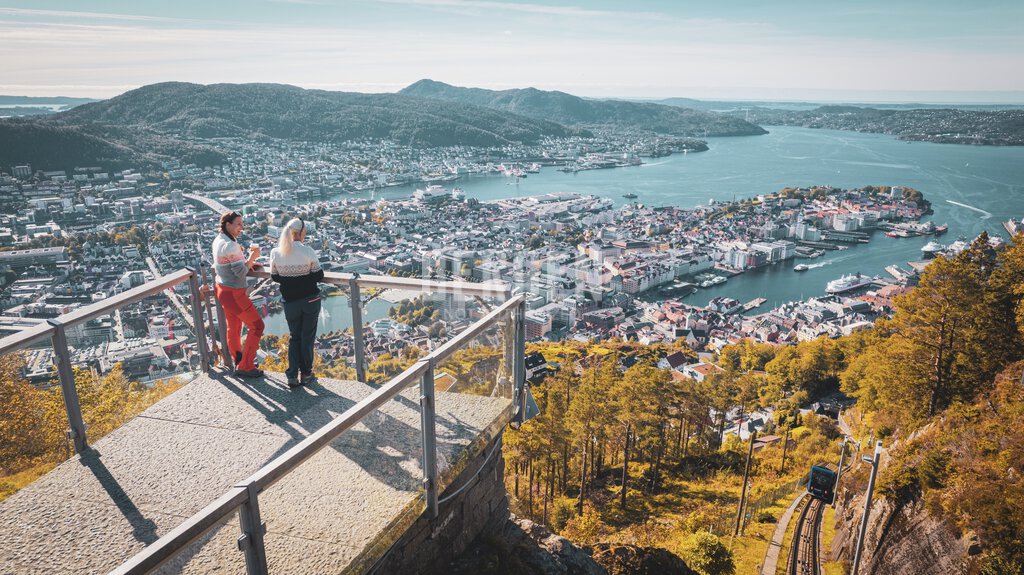 Utsikt fra toppen av Fløyen i Bergen